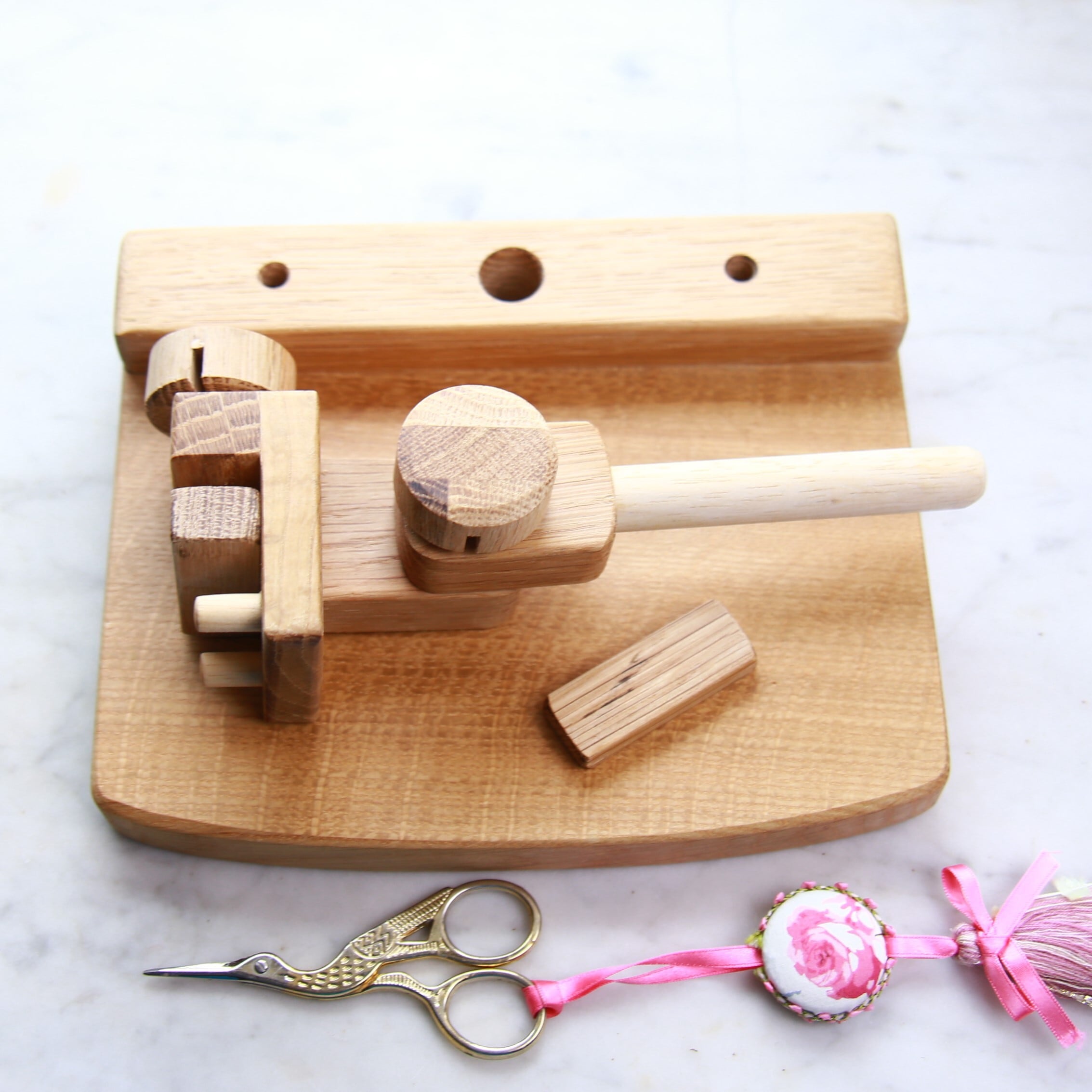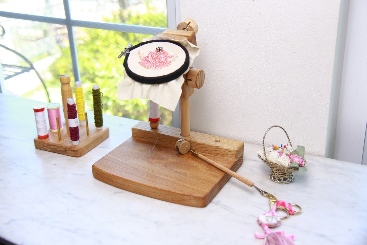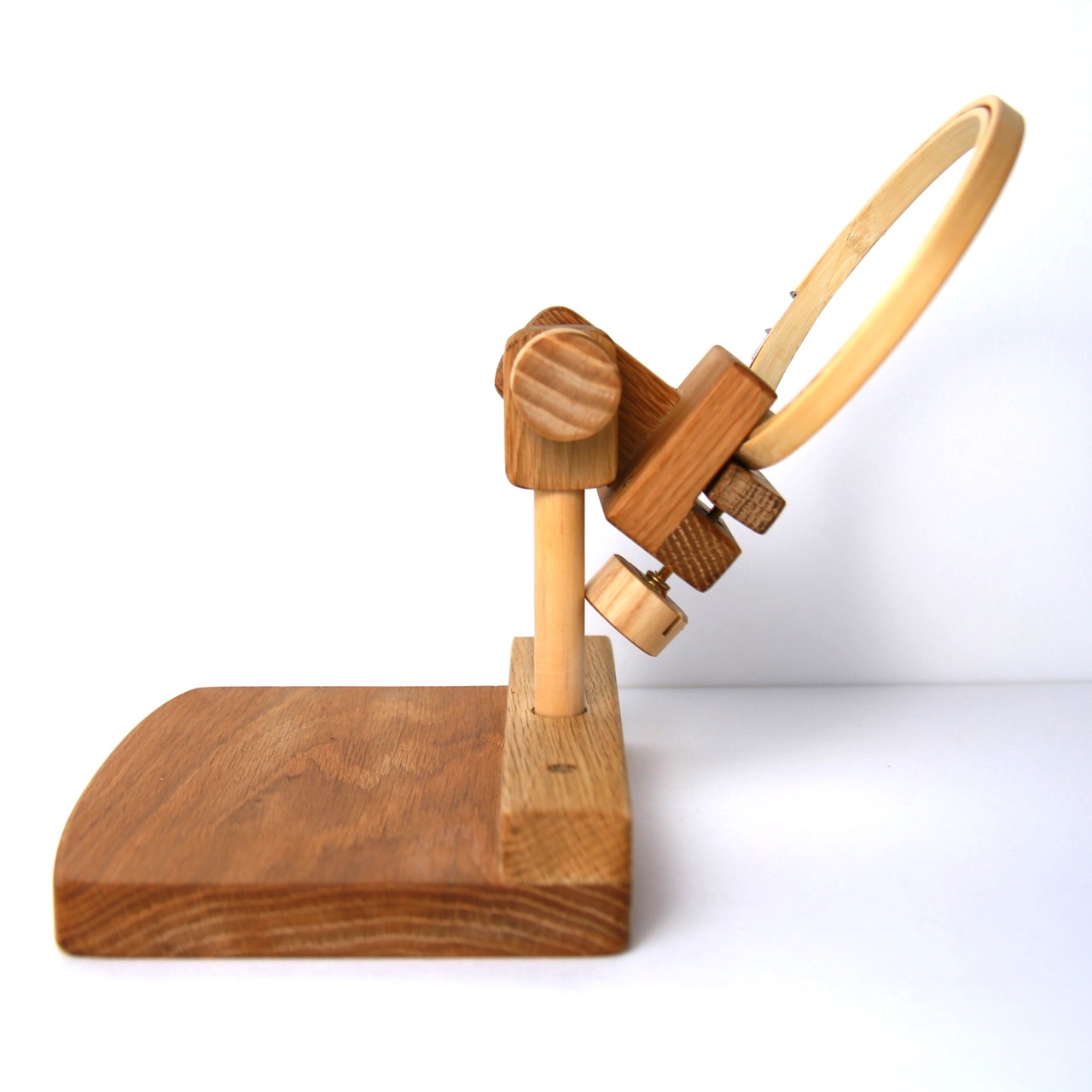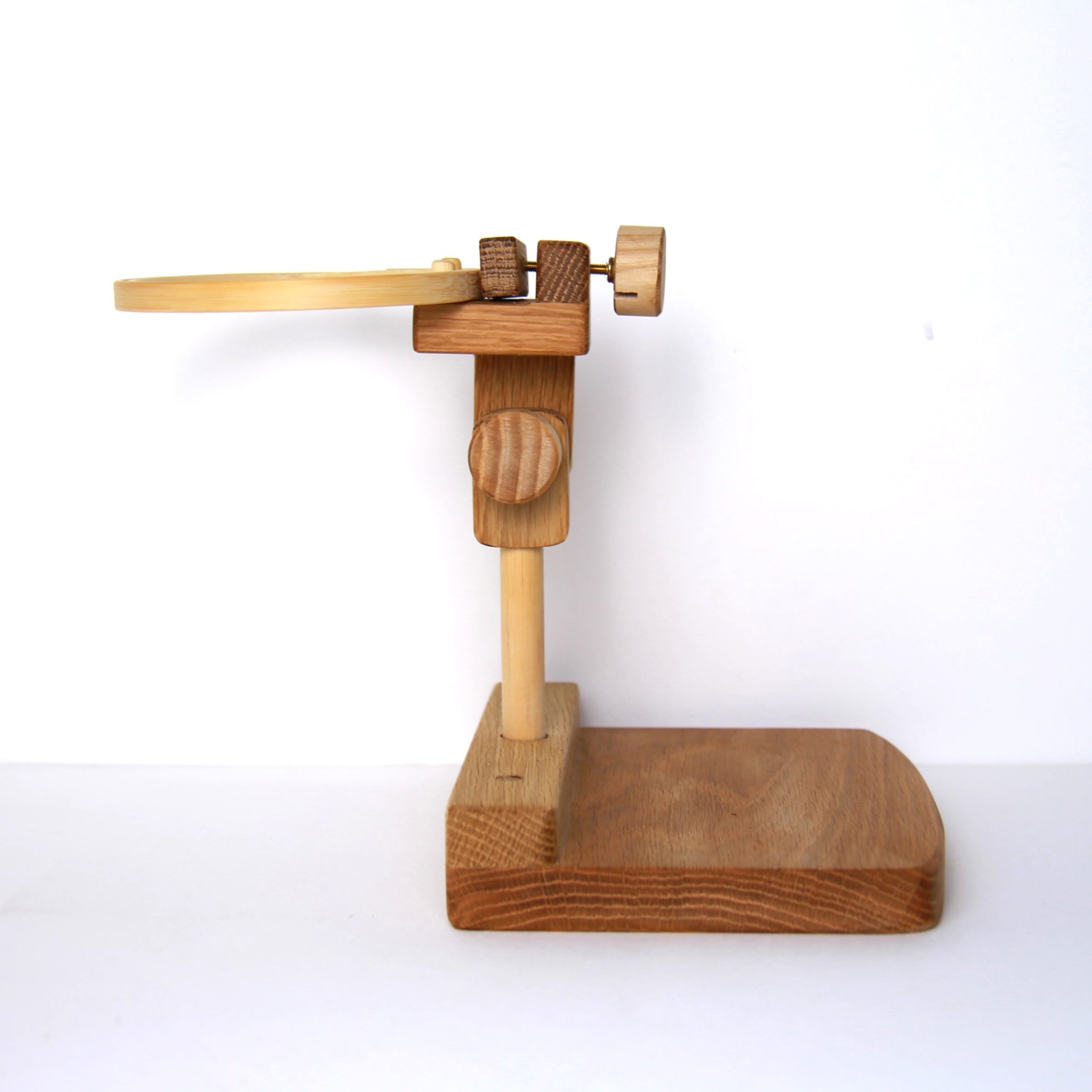 刺繍丸枠スタンド(オークC)【マカロンみたいな丸ハンドル装備+2種のグリップが付属】※刺繍丸枠は付属していません #エディ工房 #刺繍フープスタンド #刺繍スタンド #刺繍枠 #刺繍 #刺繍台 | エディ工房 [EDDY WOODWORKS]