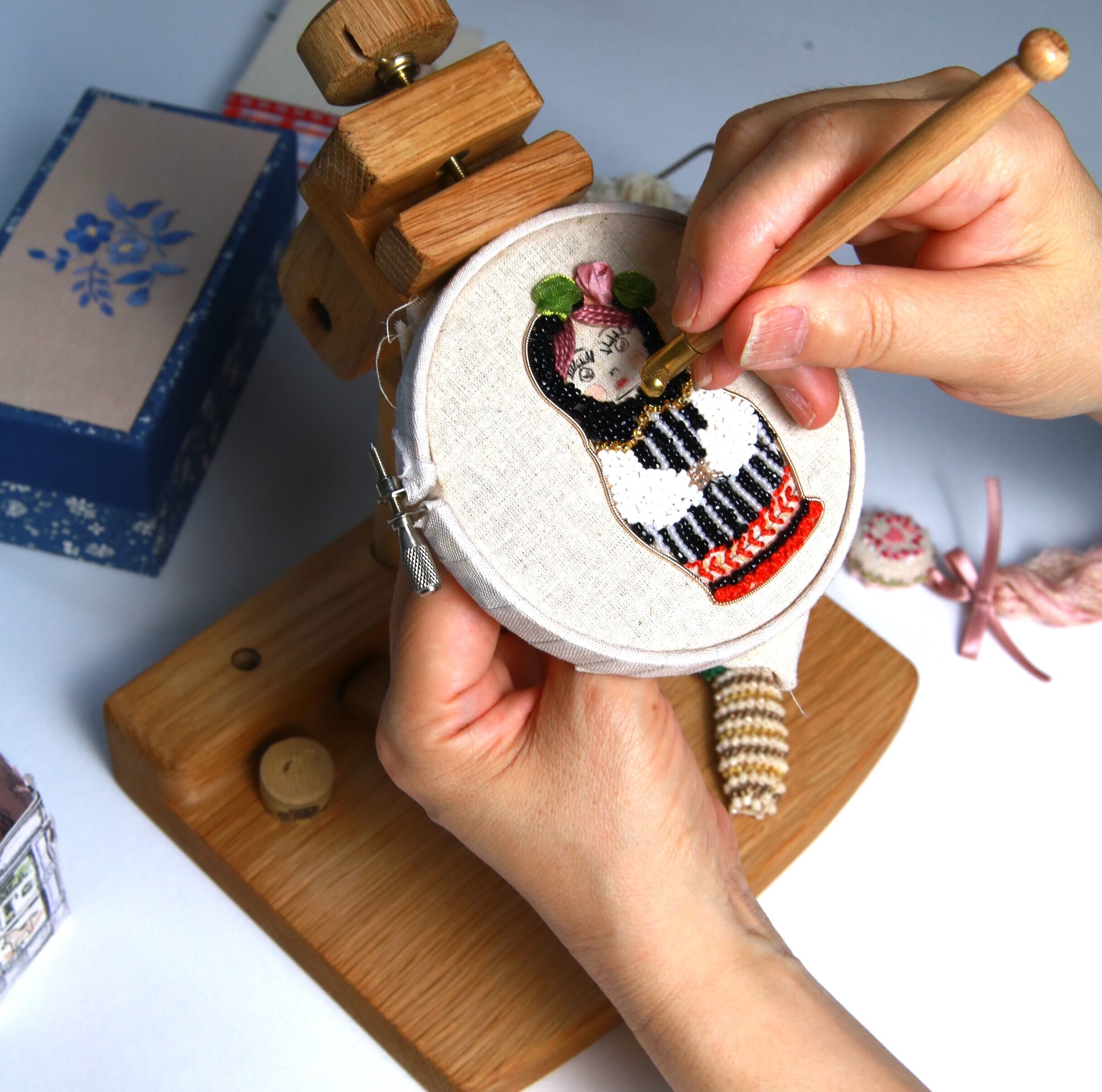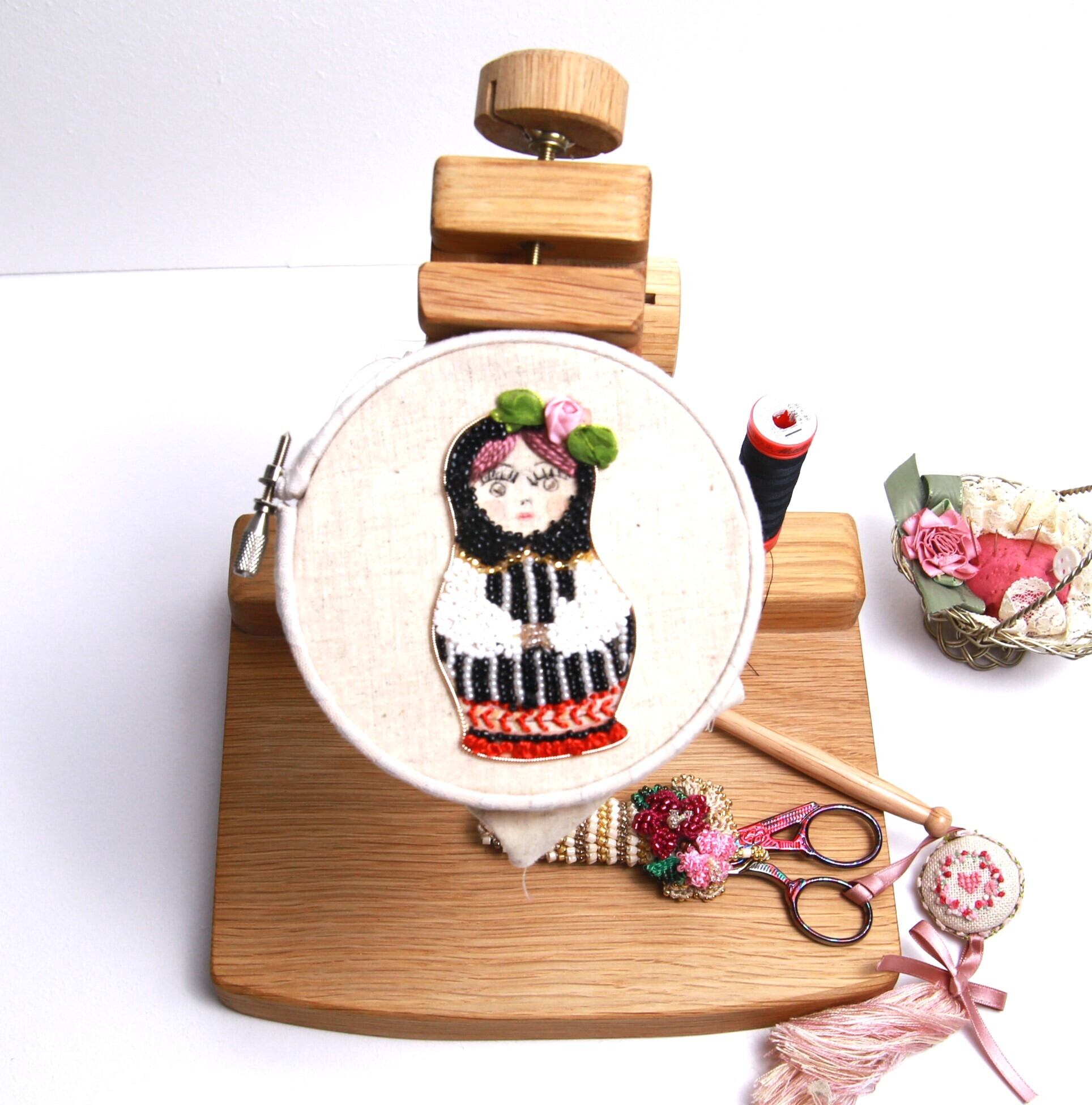 注;刺繍丸枠、はさみ、糸巻きは演出物です。