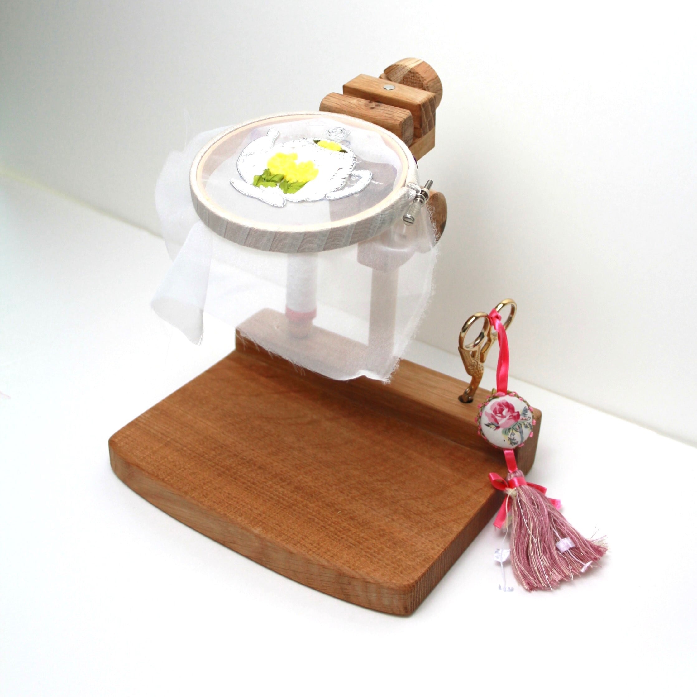 刺繍丸枠スタンド(オークC+)銘木シリーズ【丸型ハンドル装備+マグネット装備+グリップ2種付属】※刺繍丸枠は付属していません #エディ工房 #刺繍スタンド #刺繍フープスタンド #刺繍枠 #刺繍 #刺繍台 | エディ工房 [EDDY WOODWORKS]